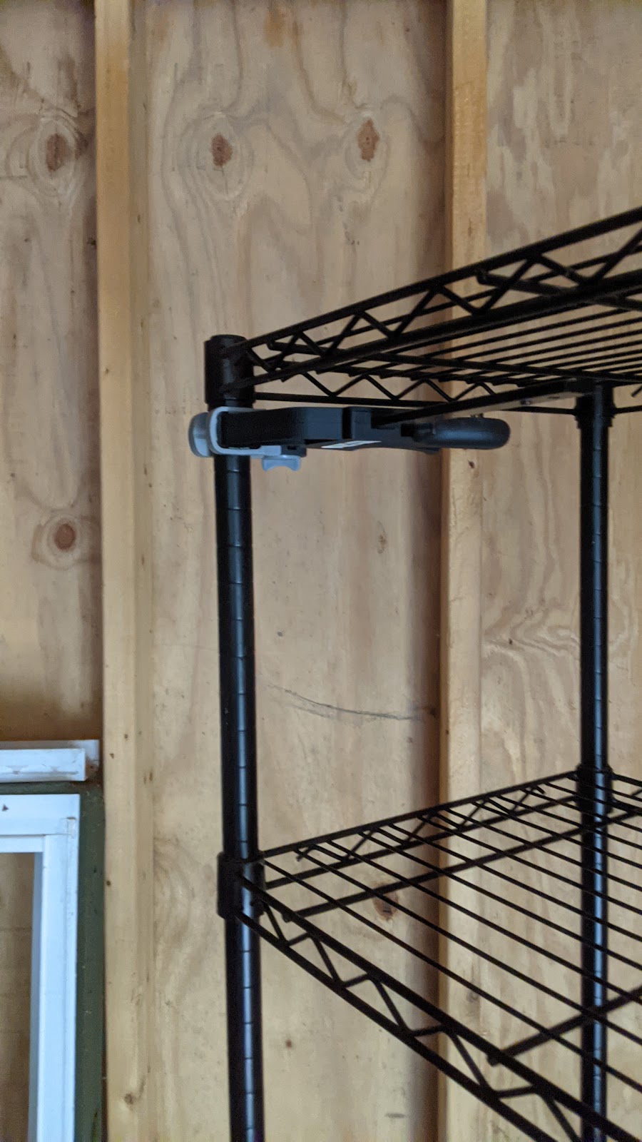 After that I spent some time up in the shed. I got the wire rack assembled. This is definitely its last hurrah unless I can find new clips for it. On several of them, I had to hold them with a clamp to keep the plastic clips from shifting.