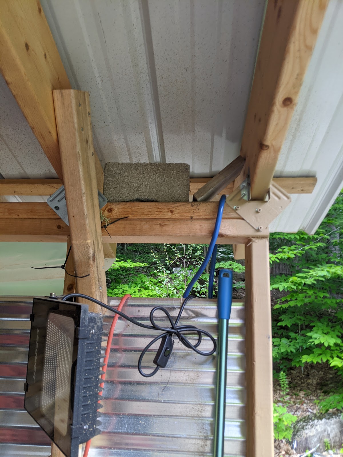 I also got tired of knocking the beginnings of a nest out of here every day, so I put up a block to make them look elsewhere.