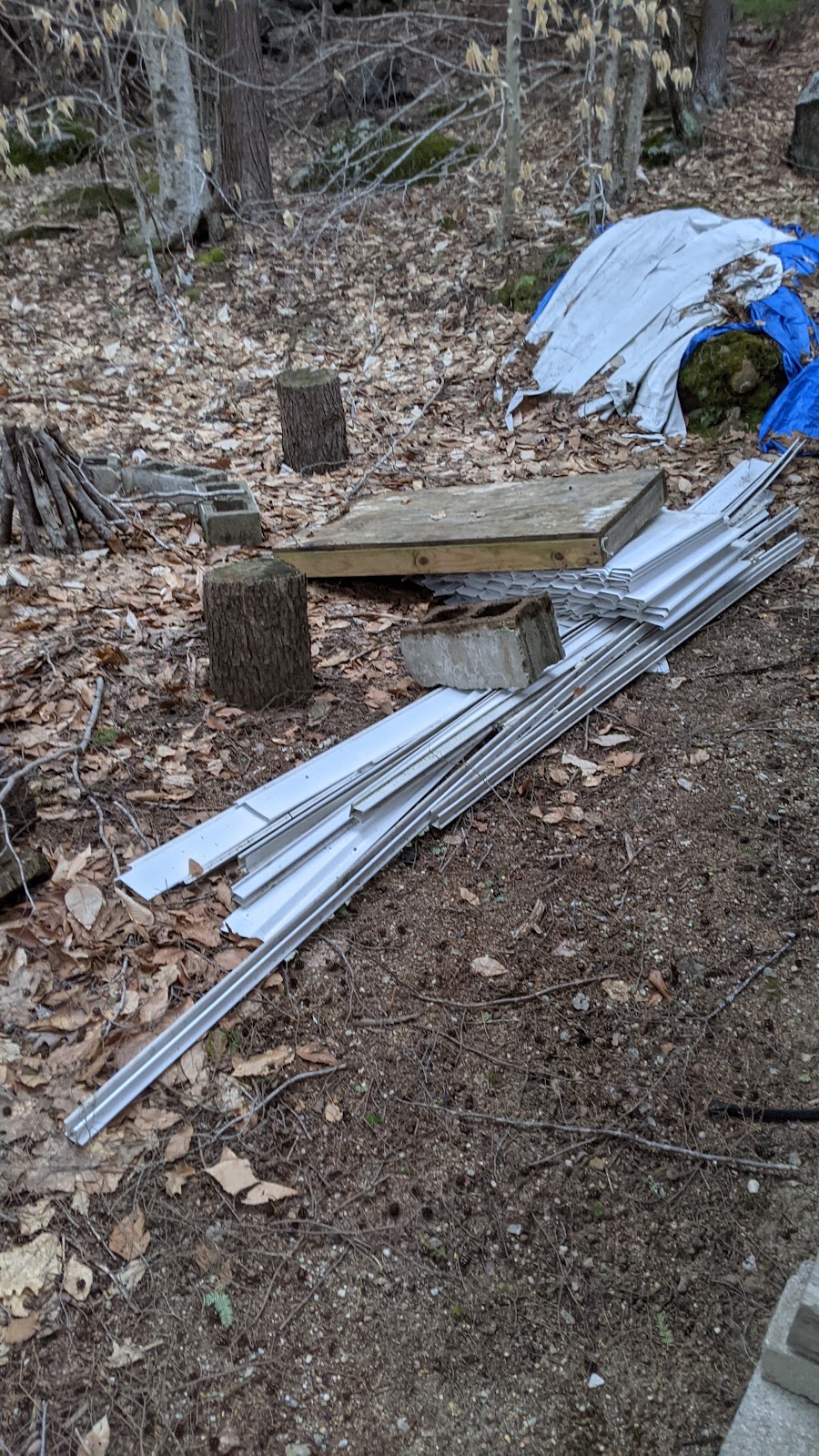 I don't really have a good place to store it, but for now it is behind the shed with stuff on it so it stays there (I hope). My dad wants it to replace some broken pieces on his house, and this stuff is only 5 years old and in pretty good shape.