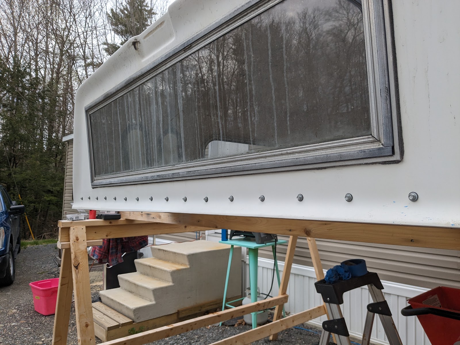 Saturday I was kind of lazy since the day started off rather soggy but dragged myself out a bit to work on the cap in the afternoon. I finished getting the new braces installed.