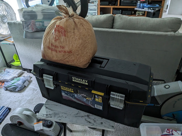 I also went to cover the excavator back up so I could mow the back. It was uncovered so I could change the fluids, but at this point it won't happen before I leave. I did put some Gorilla Tape on the cover so it doesn't snag the tarp, but the tarp apparently had pools of water in it that hadn't evaporated off, so I didn't completely cover it. I will finish tarping it when I get home today.